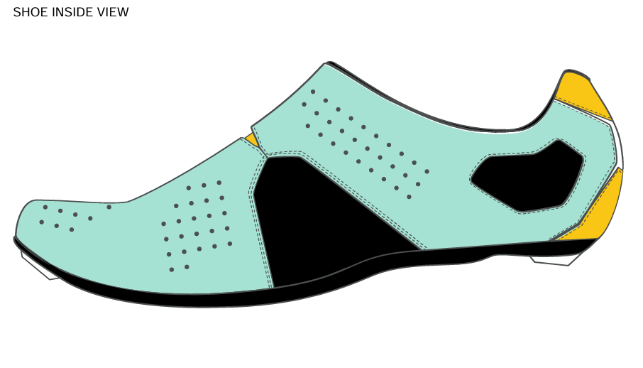 つま先、ヒールカップ部分にはCFC(Custom Fit Carbon)という熱で形が変わる素材が入っています。
