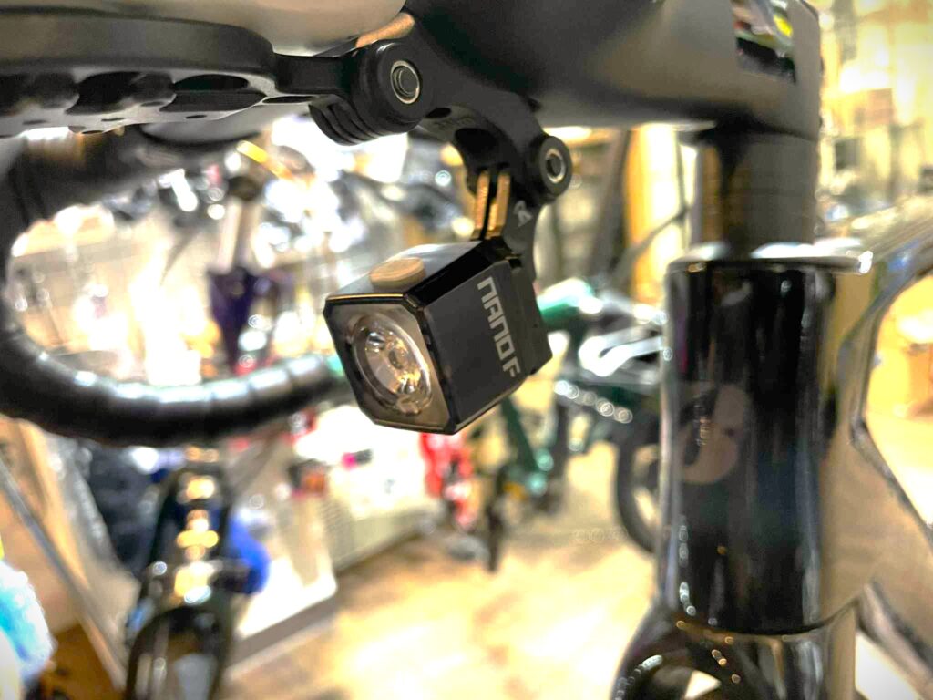 NANO F はお手頃なお値段でボントレガーION100と同じ100ルーメン、レックマウントと組み合わせればサイクルコンピュータ下にコンパクトに収まります。