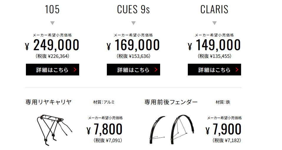 コンポーネントも105、CUES、CLARISの三種類あり、用途や予算に合わせてお選びいただけます。